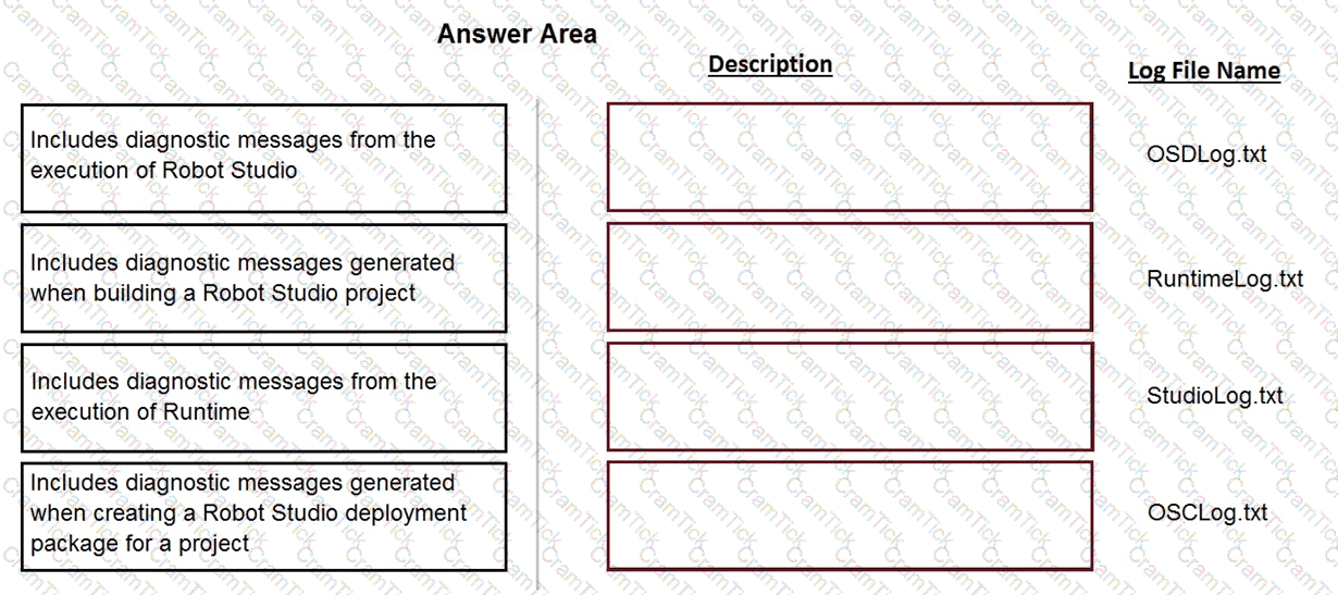 In the Answer Area, drag the description of the log file on the left to its correct log file name.