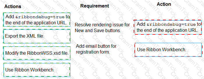 You need to implement ribbon display rules to control availability for the scoring command button. Which rule types should you use? To answer, select the appropriate options in the answer area. NOTE: Each correct selection is worth one point.