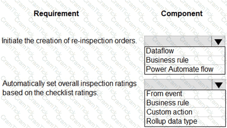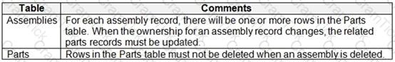 You are designing a Microsoft Power Platform solution for an automobile parts manufacturer. You create the following tables: