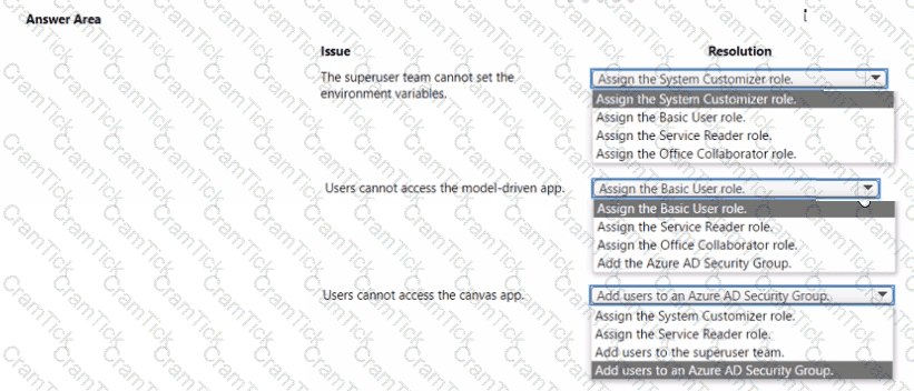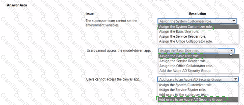 You are working with a customer to plan a go-live deployment to their production environment. The solution includes several apps and environment variables. The superuser team manages the production environment that is secured by using a specific environment Azure AD security group.
