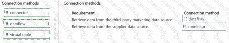 To answer, move the appropriate connection methods to the correct requirements. You may use each connection method once, more than once, or not at all. You may need to move the split bar between panes or scroll to view content.