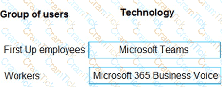 What should you recommend? To answer, drag the appropriate technologies to the correct groups of users. Each technology may be used once, more than once, or not at all. You may need to drag the split bar between panes or scroll to view content.