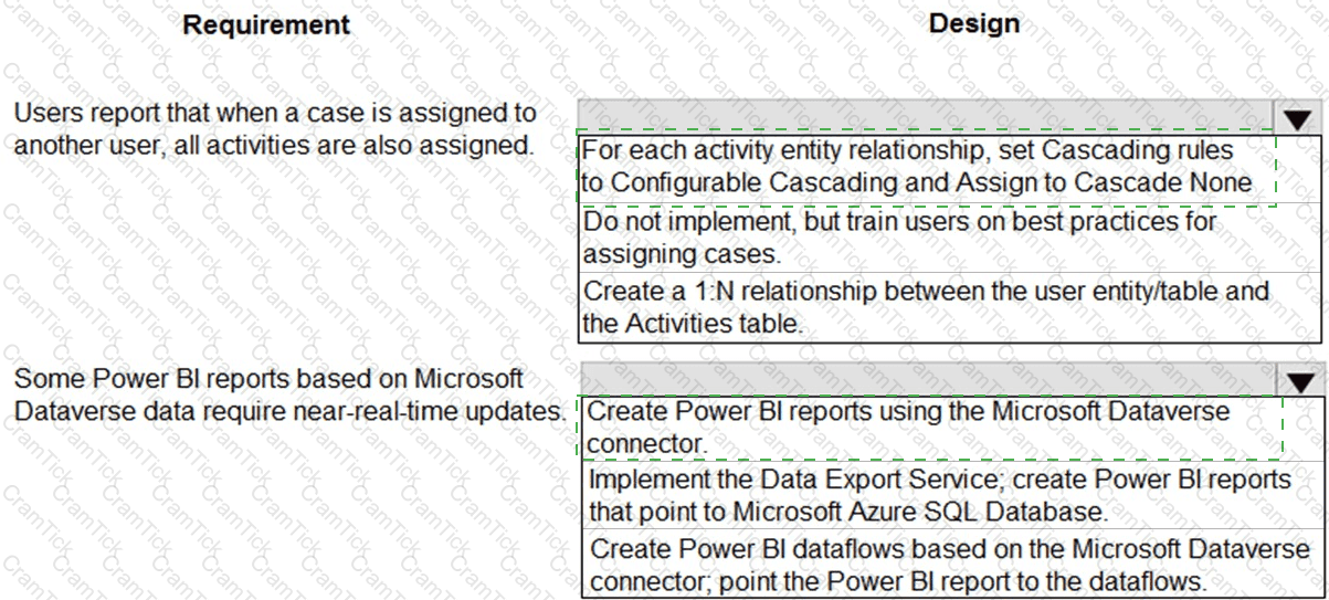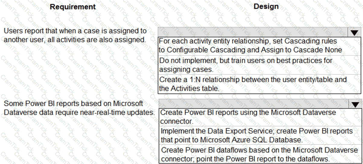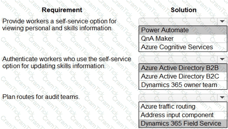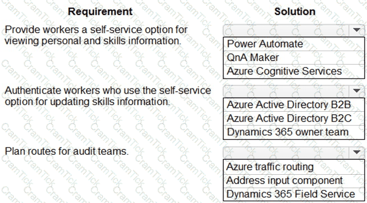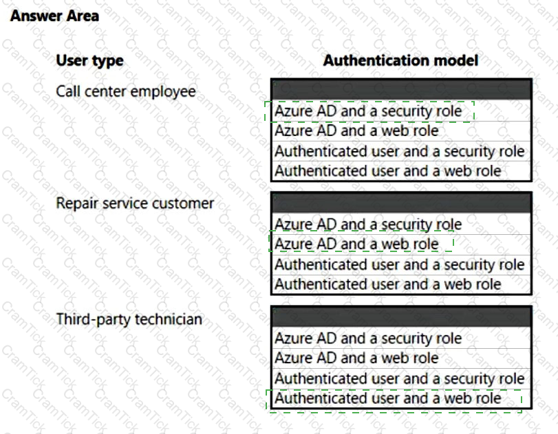 You are designing a Microsoft Power Platform solution for a national repair service. The service has a 24-hour call center for customers to call and schedule repairs.