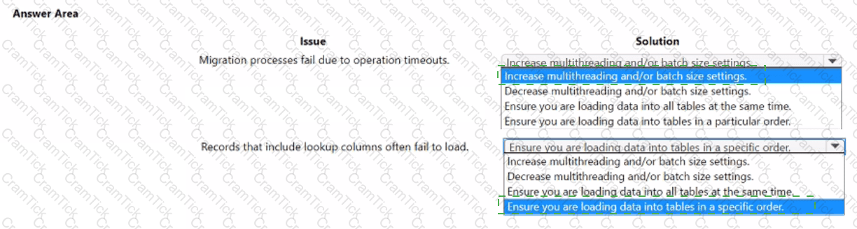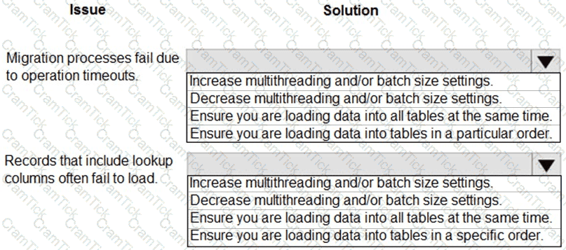 You are supporting the go-live process for a company. The company is responsible for migrating data to the Microsoft Power Platform by using a custom solution. The company reports the following issues: