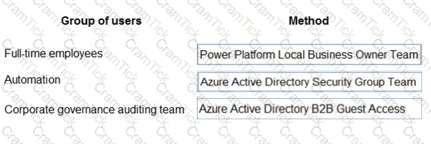 What should you recommend? To answer, drag the appropriate methods to the correct groups of users. Each method may be used once, more than once, or not at all. You may need to drag the split bar between panes or scroll to view content.