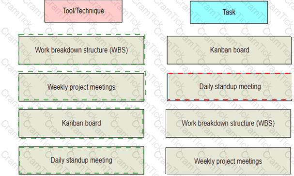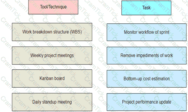 A project manager has been assigned to a software development project that will undergo several iterations until the customer is satisfied. Match the tool or technique on the left that the project manager should utilize to ensure tasks are efficiently managed to the correct task on the right.