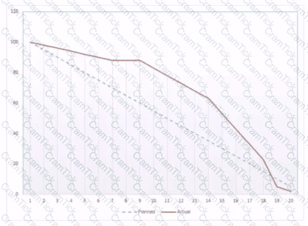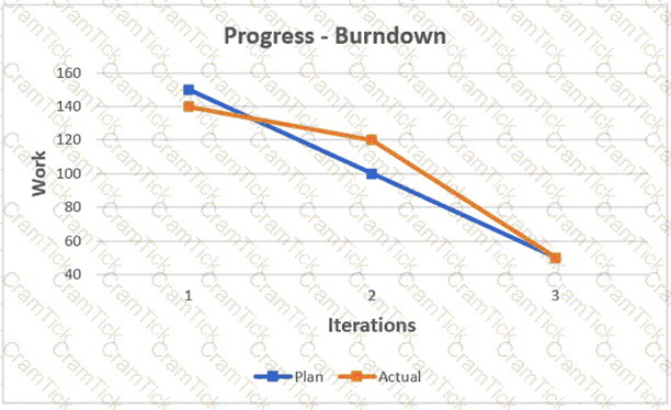 A website application project is underway and the agile team has reached a stable velocity. After eight iterations, they complete 20 story points per sprint. The project lead and team plan to maintain the same velocity for the next 2 months. After this period, the team completed 100 story points. The project sponsor asks for the project status.