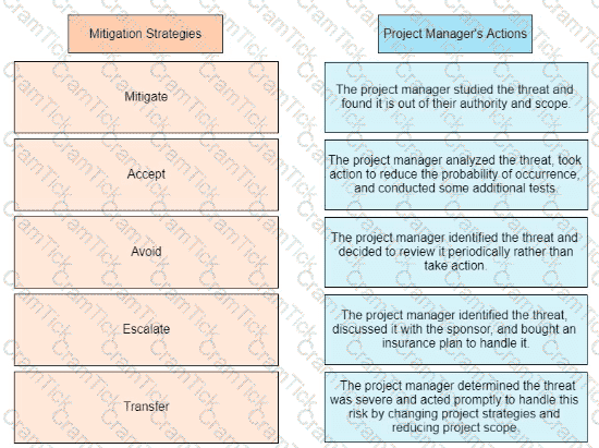 Drag the mitigation strategy on the left to the project manager's actions on the right
