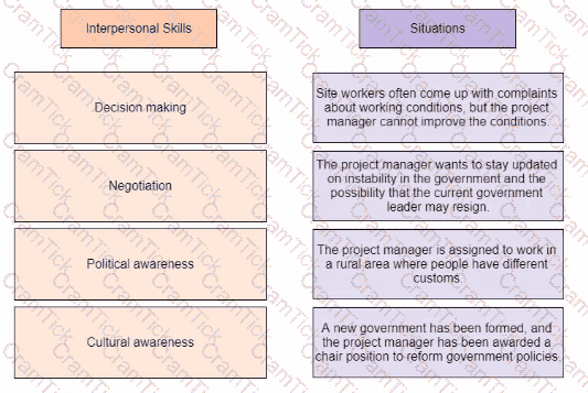 A project manager for a government organization often deals with stakeholder engagement issues Drag the interpersonal skill the project manager should use on t he left to the correct situation on the right