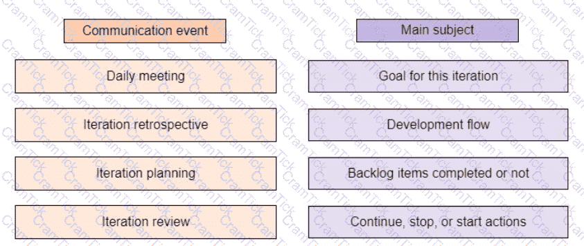 Drag the communication event on the left to the mam subject discussed during the event on the right.
