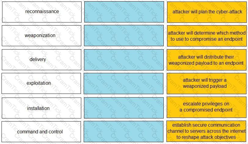 Given the graphic, match each stage of the cyber-attack lifecycle to its description.