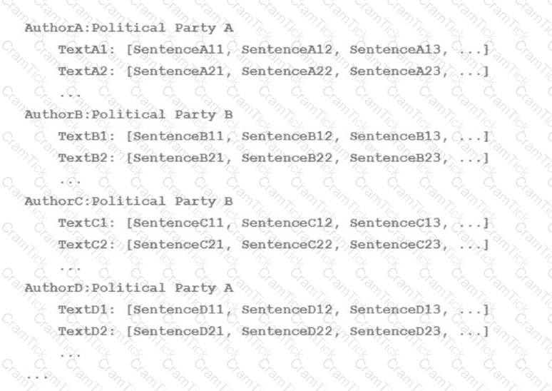 Your team is working on an NLP research project to predict political affiliation of authors based on articles they have written. You have a large training dataset that is structured like this: