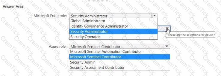 You need to configure the Microsoft Sentinel integration to meet the Microsoft Sentinel requirements. What should you do? To answer, select the appropriate options in the answer area. NOTE: Each correct selection is worth one point.