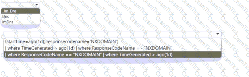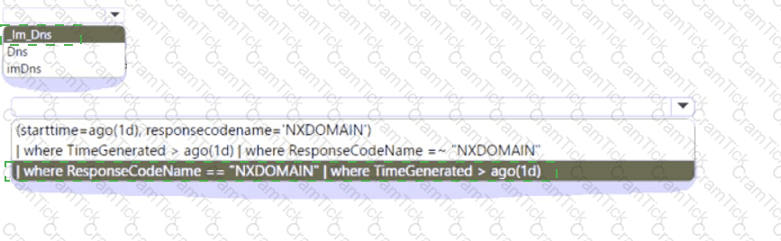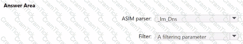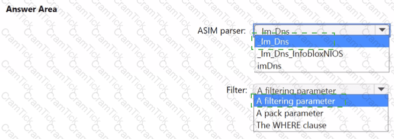 You need to implement the ASIM query for DNS requests. The solution must meet the Microsoft Sentinel requirements. How should you configure the query? To answer, select the appropriate options in the answer area. NOTE: Each correct selection is worth one point.