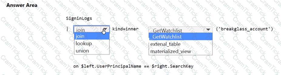 How should you complete the query? To answer, select the appropriate options in the answer area.