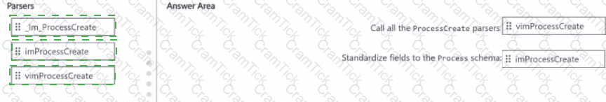 Which parser should you modify to meet each requirement? To answer, drag the appropriate parsers to the correct requirements. tach parser may be used once, more than once, or not at all You may need to drag the split bar between panes or scroll to view content.