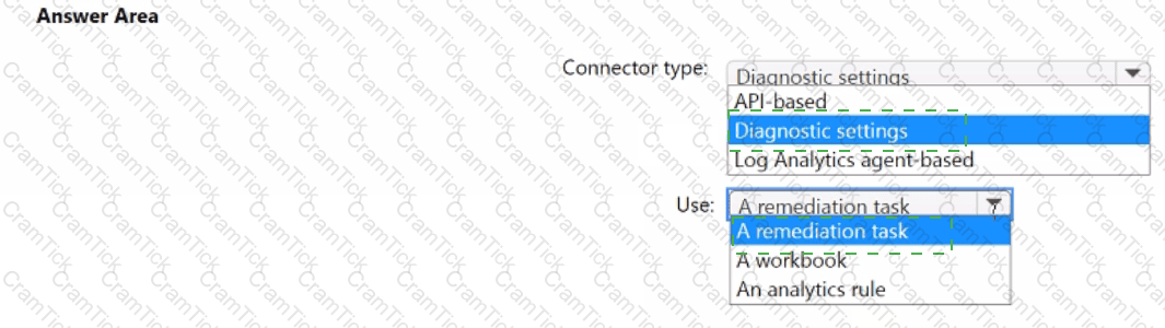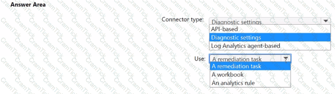 Which type of connectors should you provision, and what should you use to ensure that all the resources are monitored? To answer, select the appropriate options in the answer area.