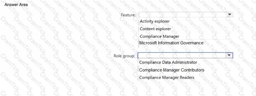 Which feature should you use and to which role group should you be added? To answer, select the appropriate options in the answer area.
