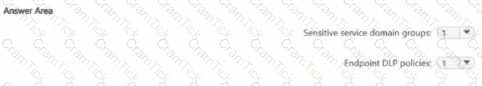 What If the minimum number of sensitive service domain groups and Endpoint DIP policies required? To answer, select the appropriate options in the answer area.