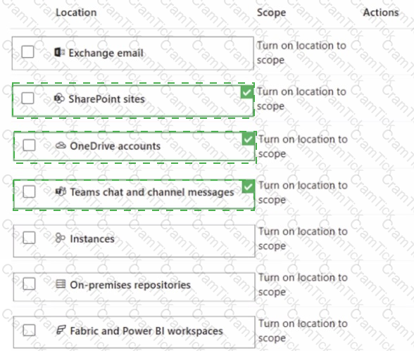 You create a data loss prevention (DLP) policy to prevent Microsoft Teams users from sharing sensitive information. You need to identify which locations must be selected to meet the following requirements: