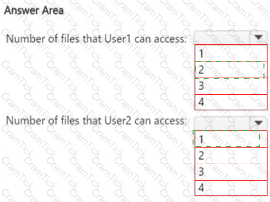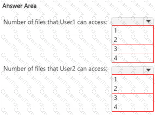 How many files in Site2 can User1 and User2 access after you turn on DLPpolicy1? To answer, select the appropriate options in the answer area.