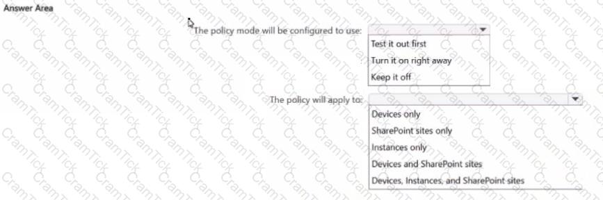 How will the policy be configured? To answer, select the appropriate options in the answer area