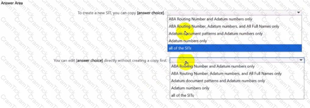 You have a Microsoft 36S subscription that contains the sensitive information types (SITs) shown in the following exhibit.