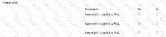 You have a Microsoft 365 subscription that has a retention label named Retention1. The subscription contains the files shown in the following table.