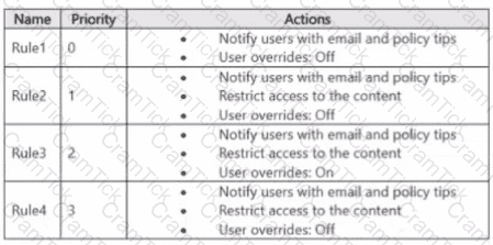 You have a data loss prevention (DIP) policy that has the advanced DIP rules shown in the following table.