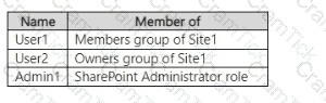 You have a Microsoft 365 E5 subscription that contains a Microsoft SharePoint Online site named Site1 and the users shown in the following table.