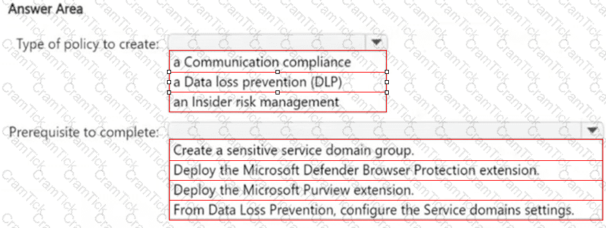 You create a data loss prevention (DLP) policy and select.
