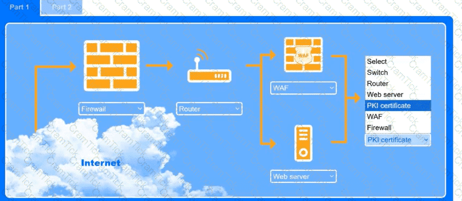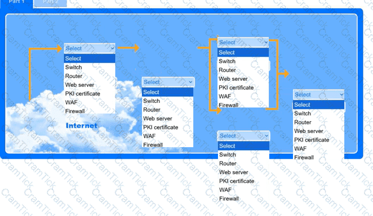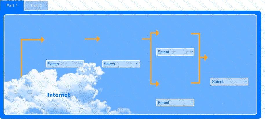 Use the drop-down menus to select the appropriate technologies for each location to implement a secure and resilient web architecture. Not all technologies will be used, and technologies may be used multiple times.