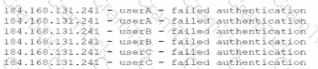 The security operations center is researching an event concerning a suspicious IP address A security analyst looks at the following event logs and discovers that a significant portion of the user accounts have experienced faded log-In attempts when authenticating from the same IP address: