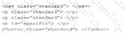 A developer needs to apply a red font color to the navigation, footer, and the first two of three paragraphs on a website.